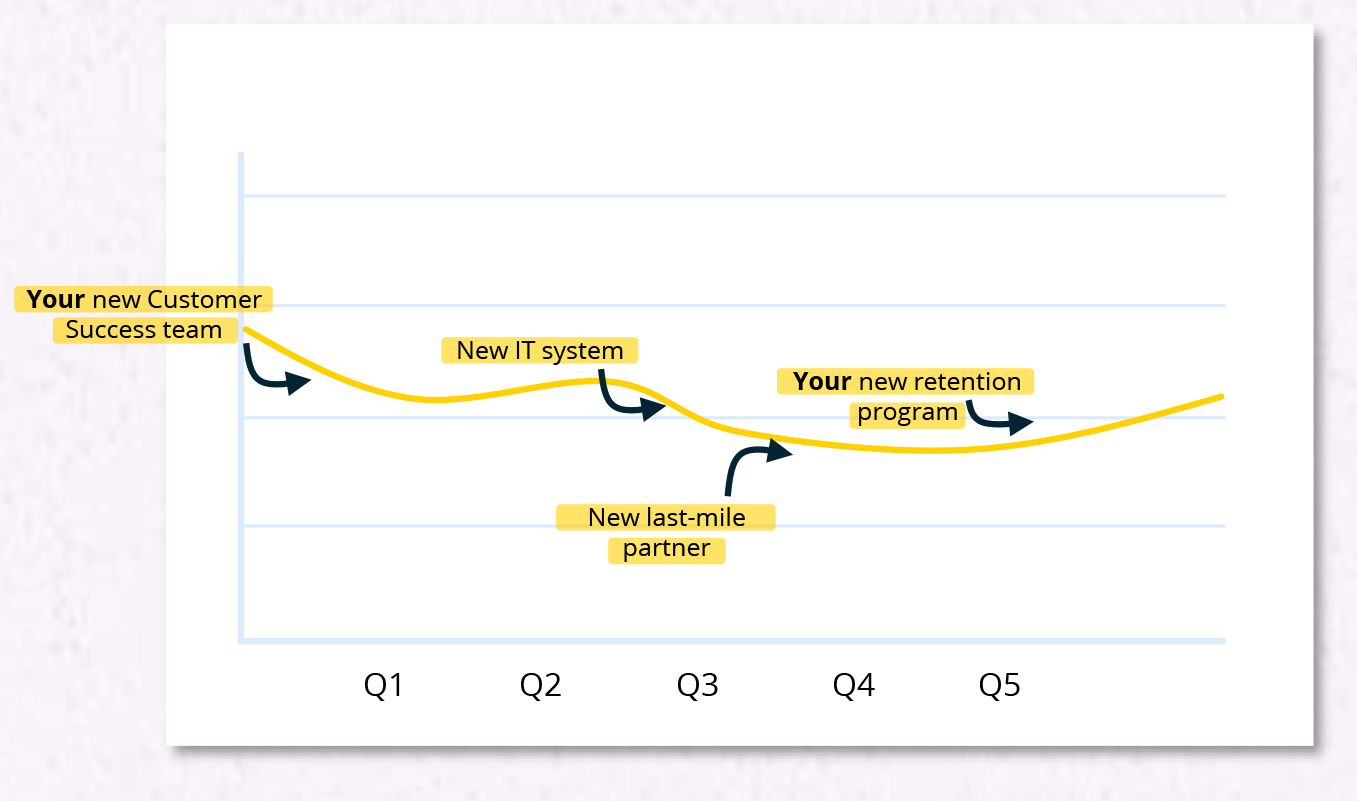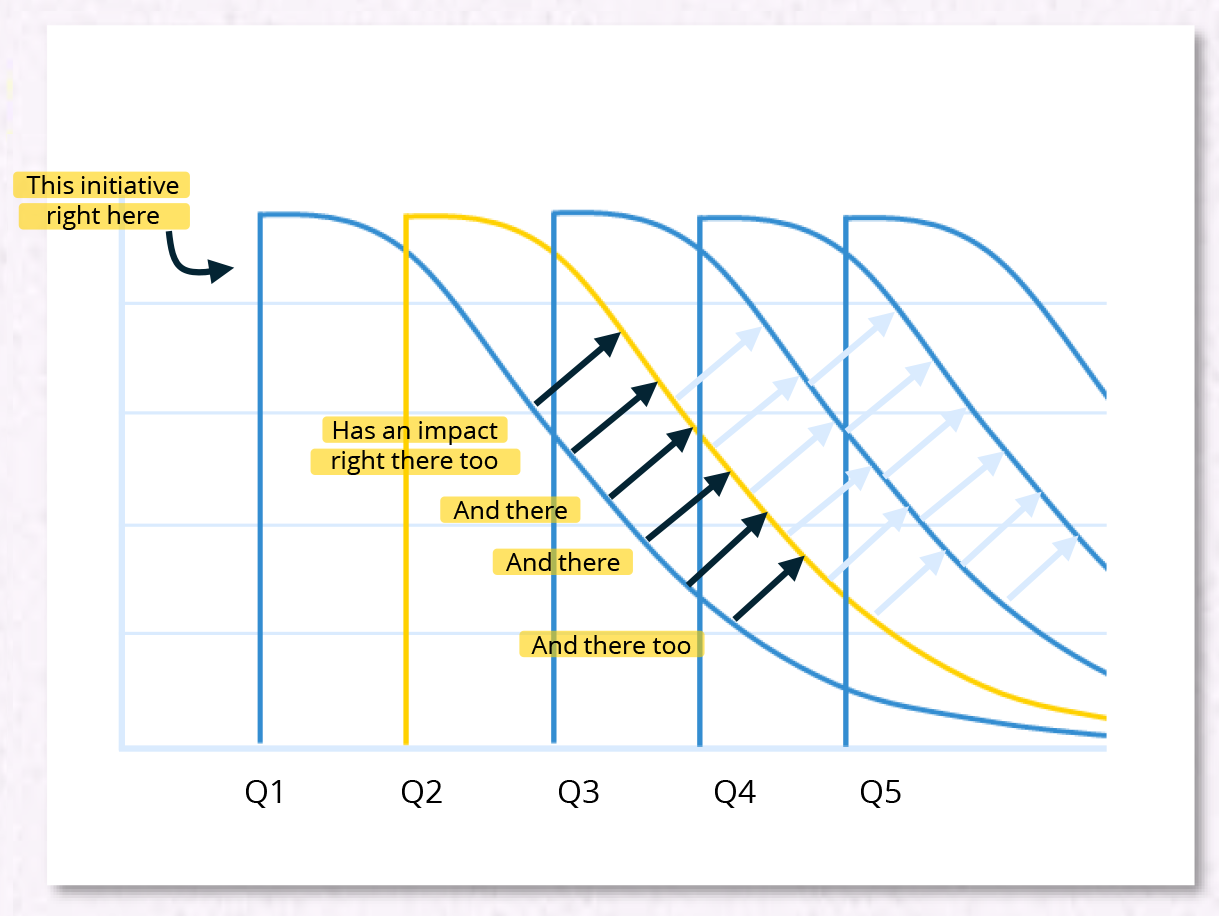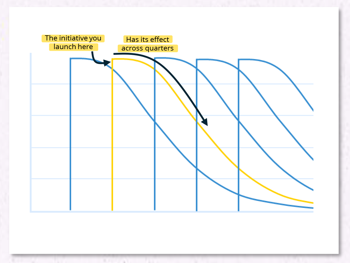 Figure 1: initiatives launched in one quarter have effects over multiple consecutive quarters