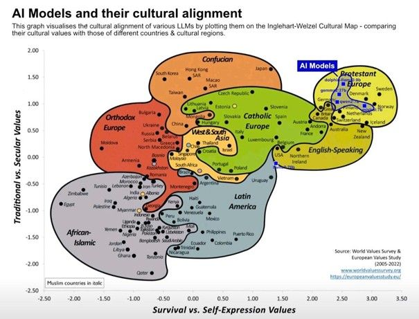 Not every LLM is created equal, and bias is baked into every model, like flour in bread. The cultural alignment diagram from the World Values Survey reveals just how Western-centric our AI models really are. English-speaking models cluster around Anglo-Protestant values, while models trained on different cultural datasets occupy entirely different regions of the cultural landscape.